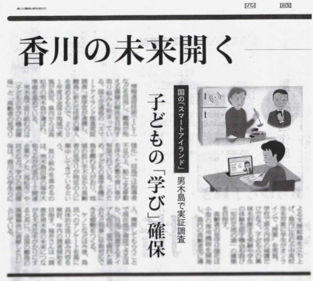 ケノヒが代表団体として実証調査を進めている「スマートアイランド」の取り組みが2021年9月1日付の四国新聞に掲載されました。